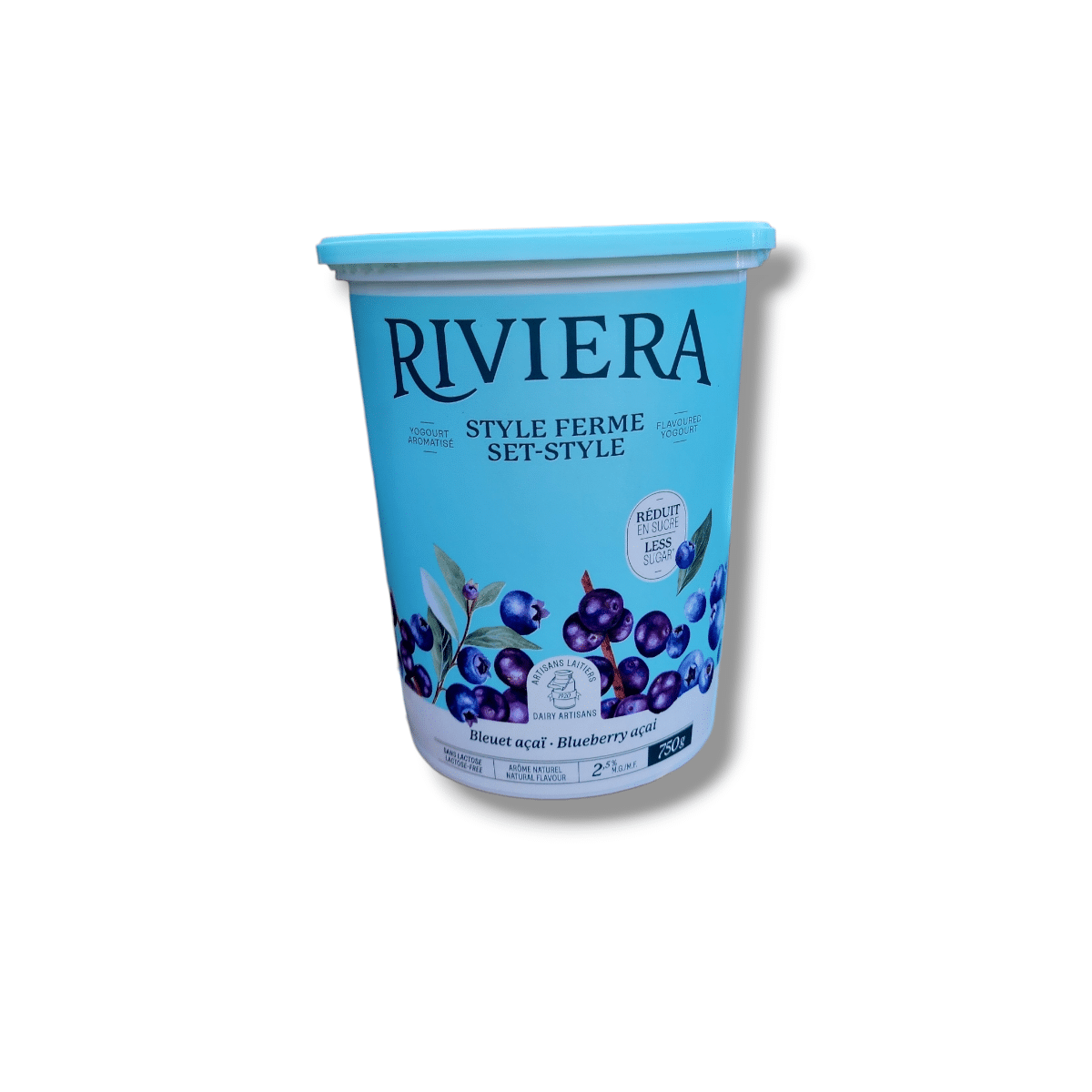 Maison Riviera delivers indulgence and nutrition in every spoonful. This creamy, probiotic-rich yogurt is blended with real blueberry and antioxidant-packed açai which will satisfy your stomach. The added bonus of this yogurt is that it has less sugar than our original recipe, as well as good source of calcium and protein to include in your daily diet.